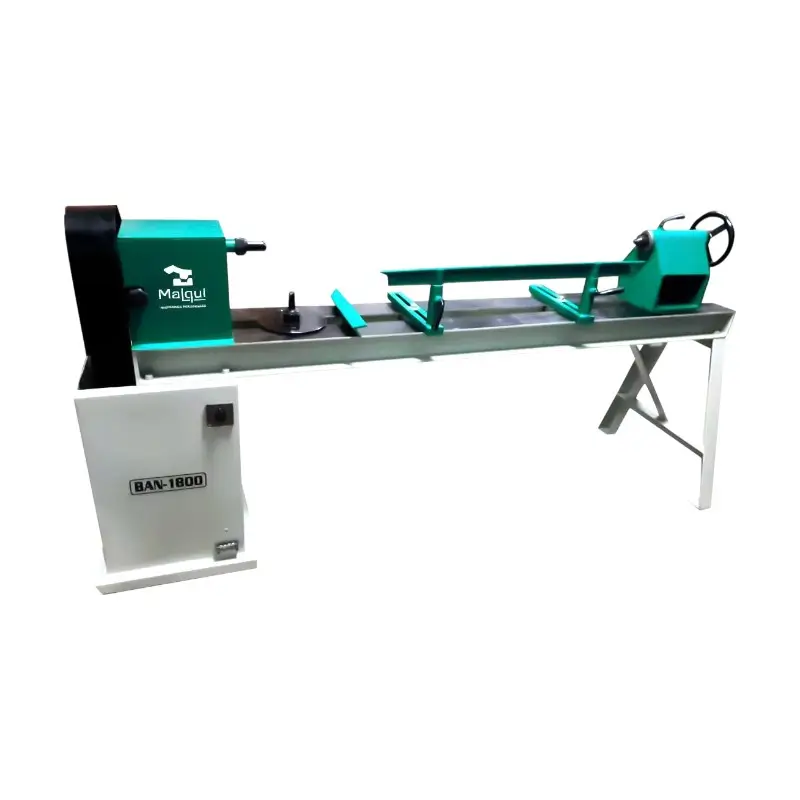 Los tornos, modelo BAN-1800, Un torno de madera es una máquina herramienta que hace girar una pieza de madera sobre un eje para dar forma a esta mediante el corte con herramientas estáticas, permitiendo crear objetos de revolución simétricos como cuencos, patas de mesa y esculturas, mediante técnicas de torneado, fresado, perfilado, con rodamiento tipo chumacera europea que le da una alta durabilidad en el trabajo.