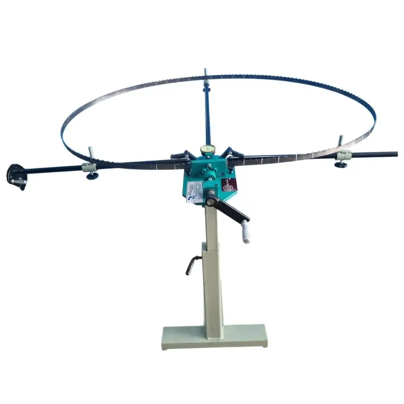 Una trabadora de sierra, o triscador, es una herramienta que se usa para ajustar los dientes de una sierra de cinta, torciéndolos alternativamente (triscado) y aplicando un proceso de igualado. Este ajuste es esencial para asegurar que los dientes estén correctamente posicionados, permitiendo que la sierra deslice más fácilmente, elimine eficazmente el serrín y produzca cortes rectos y precisos, evitando el recalentamiento y grietas en la hoja por fricción.